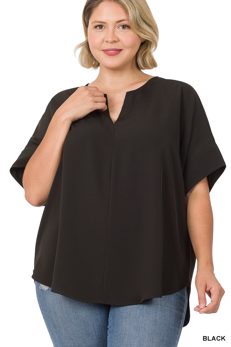 Plus soft melange exposed seam v-neck 3/4 slv hi low top